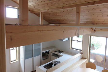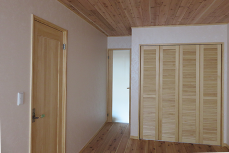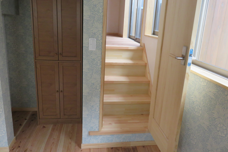 パソコンルームからベッドルームへの眺めです。 階段踏板は節ありのパイン材を使用しています。 ※画像クリックで詳細表示されます。 |