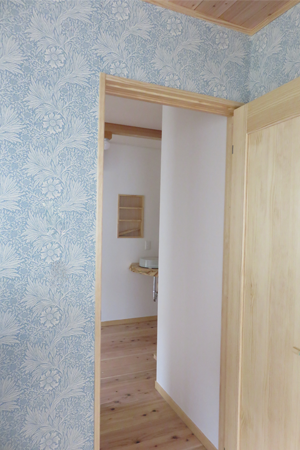 | パソコンルームから廊下の眺めです。 壁紙は「ウイリアム・モリス」の壁紙を使用しています。 ※画像クリックで詳細表示されます。 |