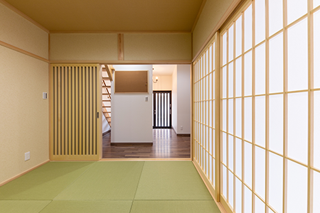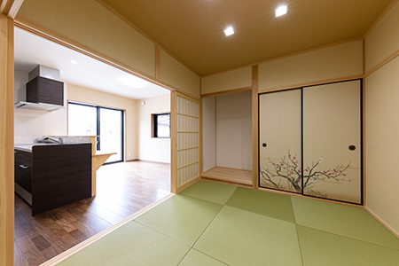 障子を開けるとリビングと繋がる開放的な空間になります。