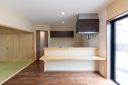 広々と使える対面システムキッチン。